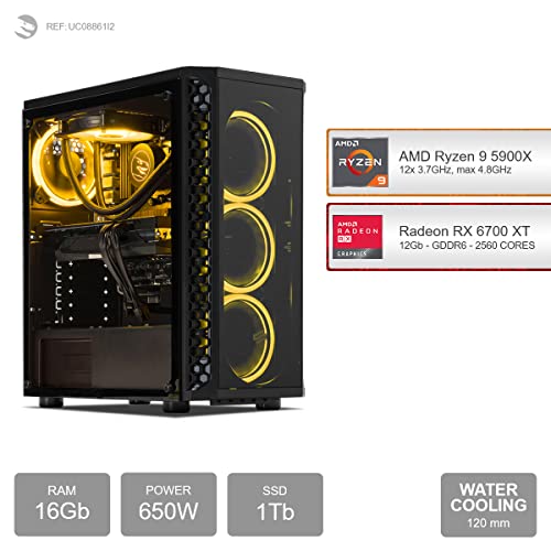 - Gaming PC, mit Prozessor 12-Core AMD Ryzen 9 5900X 12x 3.7GHz (max 4.8GHz) und Grafikkarte Radeon RX6700 XT 12Gb