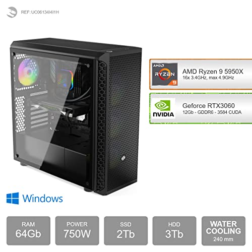 - Gaming PC, mit Prozessor 16-Core AMD Ryzen 9 5950X 16x 3.4Ghz (max 4.9Ghz) und Grafikkarte Geforce RTX 3060 12Gb