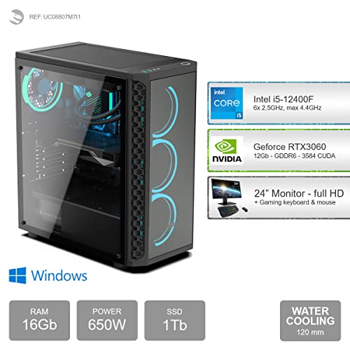 - Gaming PC, mit Prozessor 6-Core Intel Core i5-12400F 6x 2.50GHz (max 4.4GHz) und Grafikkarte Geforce RTX 3060 12Gb
