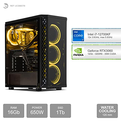- Gaming PC, mit Prozessor 12-Core Intel Core i7-12700KF 12x 3.60GHz (max 5.0GHz) und Grafikkarte Geforce RTX 3060 12Gb