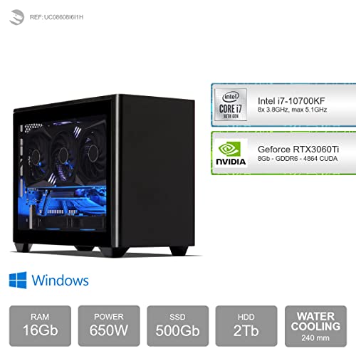 - Gaming Mini PC, klein und silent, mit Prozessor 8-Core Intel Core i7-10700KF 8x 3.80Ghz (max 5.10Ghz) und Grafikkarte Geforce RTX 3060Ti 8Gb