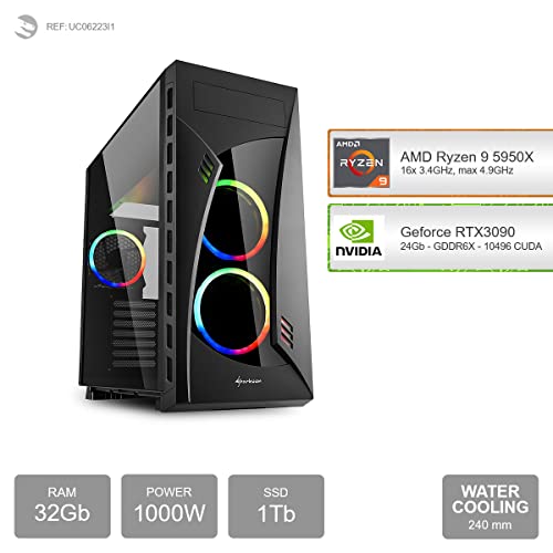 - Gaming PC, mit Prozessor 16-Core AMD Ryzen 9 5950X 16x 3.4Ghz (max 4.9Ghz) und Grafikkarte Geforce RTX 3090 24Gb