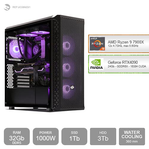 - Gaming PC, mit Prozessor 12-Core AMD Ryzen 9 7900X 12x 4.7GHz (max 5.6GHz) und Grafikkarte Geforce RTX4090 24GB