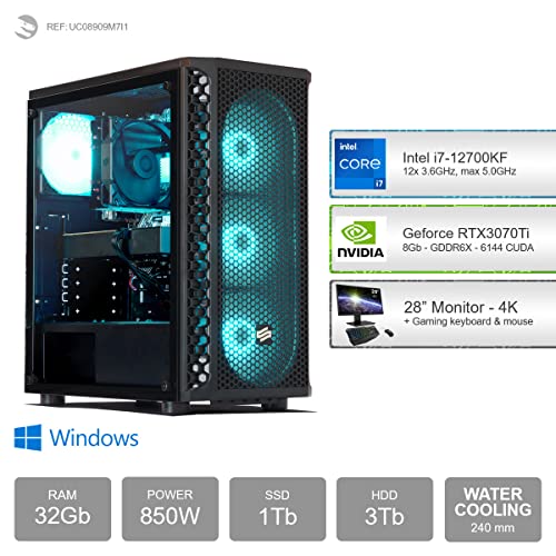 Sedatech Wasserkühlung Pro Gaming PC • Intel i7-12700KF • Geforce RTX 3070 Ti • 32GB RAM • 1TB SSD M.2 • 3TB HDD • WLAN • BT • Windows • Desktop Computer • Monitor 28"