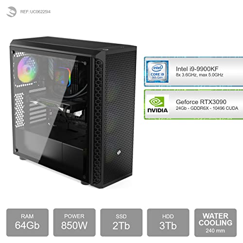- Gaming PC, mit Prozessor 8-Core Intel Core i9-9900KF 8x 3.60GHz (max 5.00GHz) und Grafikkarte Geforce RTX 3090 24Gb