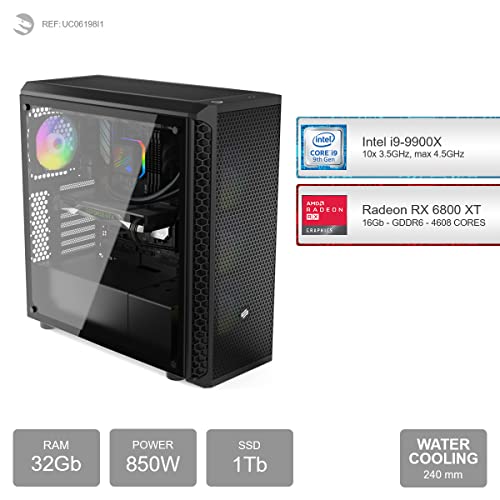 - Gaming PC, mit Prozessor 10-Core Intel Core i9-9900X 10x 3.50GHz (max 4.50GHz) und Grafikkarte Radeon RX 6800 XT 16Gb