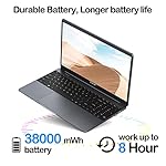 - Der Full-HD-Laptop ist mit einer dünnen Hülle, einem 2 cm schlanken Körper, einem Gewicht von 1,69 kg und einfach zu tragen. Ausgestattet mit einem fortschrittlichen 38000-mWh-Akku, der bis zu 8 Stunden Akkulaufzeit bietet, praktisch für unterwegs.