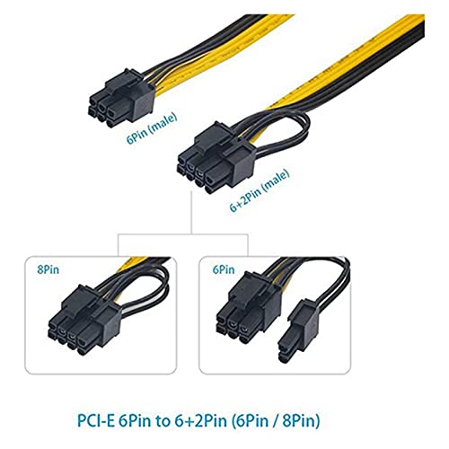 SHANGSHANG Zfuxiang Stor 10 Stück 6 Pin PCI-E Bis 8 Pin (6 + 2) PCI-E (Stecker auf Stecker) GPU Stromkabel 50cm Sitz for Bildkarten Mining Server-Ausbruch-Brett (Color : Yellow Black)