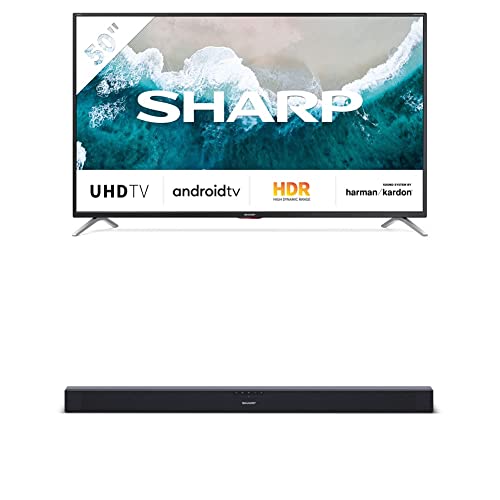 SHARP 50BL6EA Android TV 126 cm (50 Zoll) 4K Ultra HD LED Fernseher + SHARP HT-SB140 MT 2.0 Slim-Soundbar (150 Watt) mit Stereo-Sound (HDMI, Bluetooth)