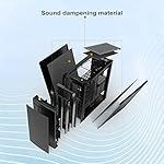 - Drastische Geräuschreduzierung mit integriertem geräuschdämpfendem Material an der Oberseite und den Seitenblenden, Staubfilter an Ober- und Unterseite des Gehäuses