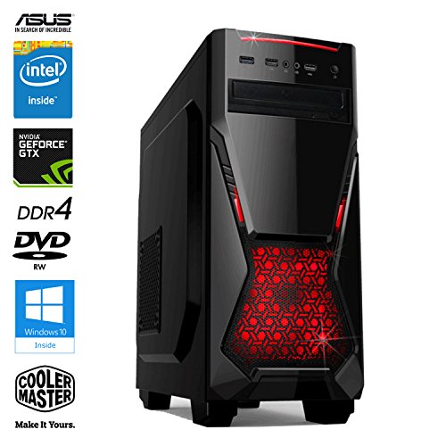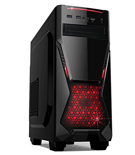 SNOGARD GAMER PC - Desktop Gaming PC (Intel Core i5-7500 4x3400Mhz, NVIDIA GTX 1050 Ti 4GB, 8GB DDR4 RAM, 1TB 7200RPM HDD, 240GB SSD, Windows 10 Professional), Black/Red