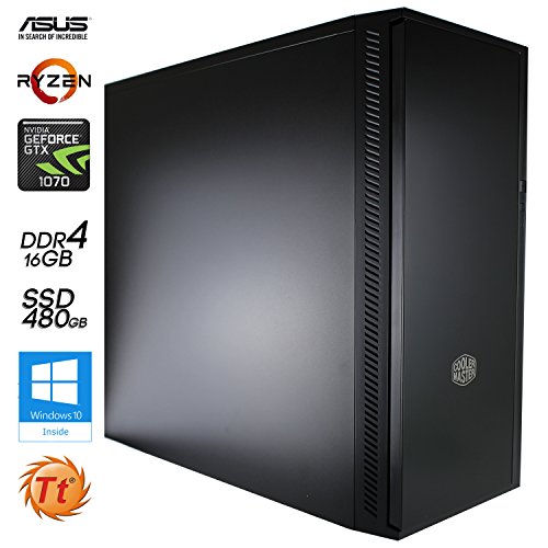 SNOGARD Gamer RYZEN PC | AMD Ryzen 7 1700X 8x 3400MHz Sockel AM4, 8GB NVIDIA GeForce GTX1070 PCIe Overclocked, 16GB DDR4 RAM, 480GB SSD + CD/DVD-Rewriter | Gaming-PC Komplett System | Desktop Gaming Computer | Spiele-PC incl. Windows 10