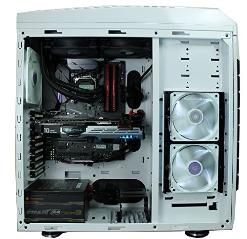 - Als Hauptplatine dient das bewährte ASUS STRIX Z270F GAMIMG Mainboard, welches in einem optisch ansprechendem CoolerMaster Storm Stryker Window White Edition BigTower Gehäuse durch elegantes Design und beeindruckende Funktionalität punktet. Den Strom liefert ein 730 Watt Smart SE Markennetzteil von Thermaltake.