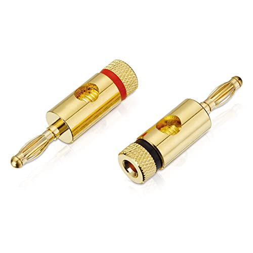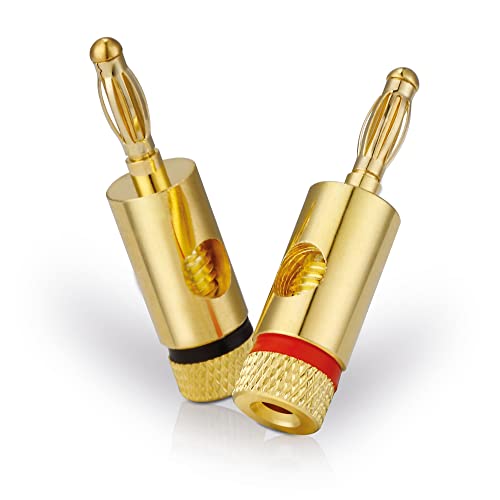 Sonero Bananenstecker Premium (8er-Set) für alle Lautsprecherkabel mit einem Durchmesser von max. 6mm², 4 Stück mit Farbcodierung (4x rot, 4x schwarz), 24k vergoldet