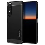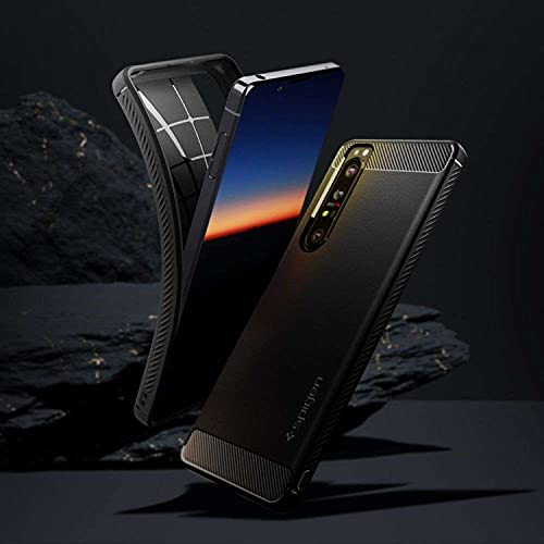 Sony Xperia 1 III 5G Smartphone (16,5 cm, 4K HDR OLED Display, Triple-Kamera System, 12 GB RAM, 256 GB Speicher) Violett & Spigen Rugged Armor Hülle Kompatibel mit Sony Xperia 1 III -Schwarz