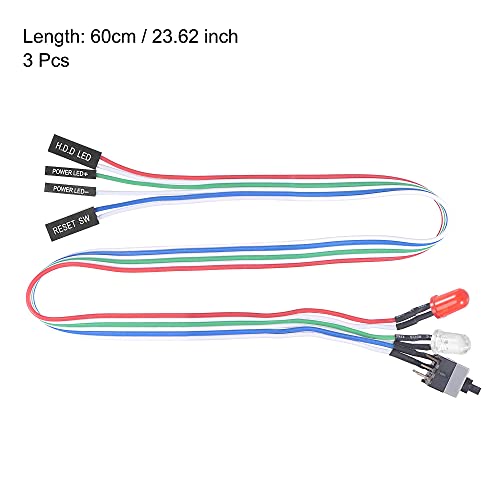 sourcing map 2-poliges Stromkabel mit 2 LEDs rot und klar, ein Schalter für ATX-Computer, 60 cm, 3 Stück