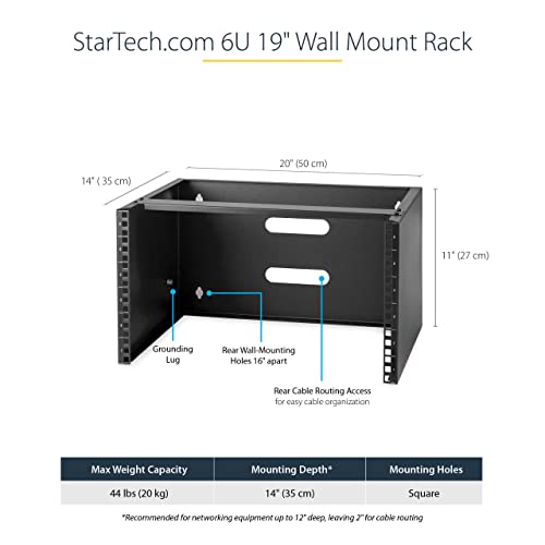 StarTech.com 6HE Netzwerkschrank 19 Zoll 6HE für Wandmontage & StarTech.com 1HE Fachboden - 1U perforiertes Universal-Rack-Montage-Server-Rack-Regal für 19 Zoll Netzwerkschränke, schwarz