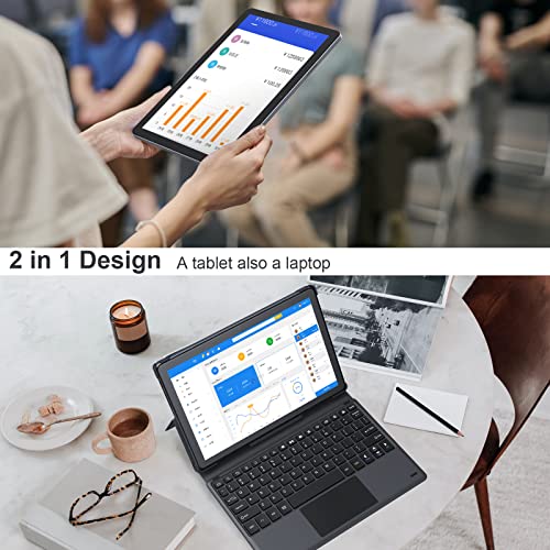 - 【2-in-1-Multifunktionstablett】 Das Tablet wird mit einer Tastatur geliefert, sodass Sie jederzeit zwischen Touchscreen und Tastatur wechseln können. Bluetooth und WiFi werden unterstützt. Mit der vorinstallierten Installation von Google Play (GMS-zertifiziert) können Sie unzählige APPs wie Facebook, Twitter, Instagram usw. herunterladen. HD-Kameras auf der Vorder- und Rückseite. Das leichte Tablet lässt sich problemlos überallhin mitnehmen.