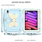 Tablet-Schutzhülle für iPad Mini 6 (2021), robuste, stoßfeste Schutzhülle mit niedlichem beigefarbenem Schmetterling-Ständer für Kinder und Mädchen, Kinderhülle mit Stifthalter, Eisblau