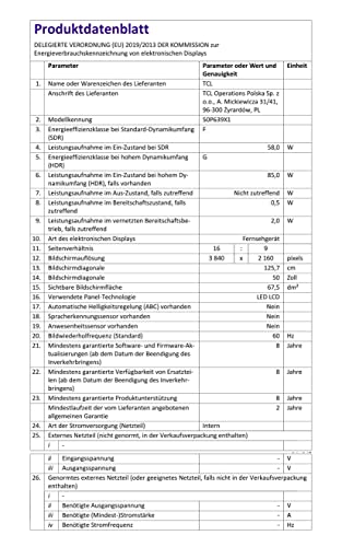 - Lieferumfang: 2 Jahre Garantie, TCL 50P639 126 cm (50 Zoll) Fernseher, Standfüße, Netzkabel, Anleitung, Fernbedienung