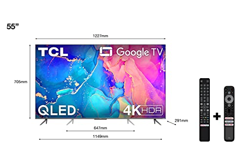 TCL 55C639 55 Zoll QLED Fernseher, 4K Ultra HD Google TV (Dolby Vision & Atmos, Onkyo Sound System, Bewegungsklarheit, Hands-Free Sprachsteuerung, Google Assistant & Alexa kompatibel)