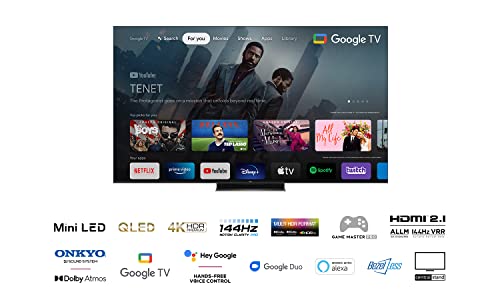 TCL 55C839 55 Zoll 139cm QLED Mini-LED Fernseher, 4K UHD, Google TV, HDR Extreme, 1500nits, 144Hz VRR, 120Hz Motion Clarity, HDMI 2.1, Dolby Vision & Atmos, ONKYO Sound, Sprachsteuerung, Metallgehäuse