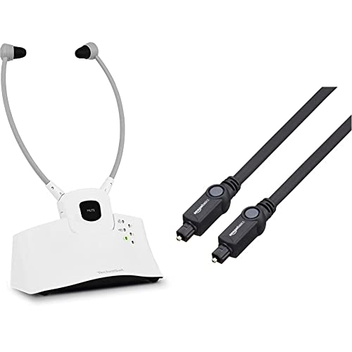 TechniSat STEREOMAN ISI 2 (Version 2) - kabelloser Stereo-Funkkopfhörer für Fernseher und Musikanlagen mit Dockingstation, weiß & Amazon Basics Toslink Optisches Digital-Audiokabel, 1 m