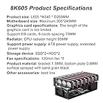 - Unterstützt 5 120-mm-Lüfter, das Motherboard unterstützt bis zu 305 * 245 mm, unterstützt ATX-Netzteil und superlanges Netzteil, CPU-Kühlkörperhöhe 95 mm, Festplatte unterstützt 2 SSDs und 2 HDDs und ist mit einem Boot-Kabel ausgestattet.