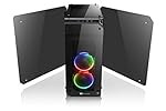 - ✔️RGB Beleuchtung an der Front und Rückseite, 4 Glasscheiben (Tempered Glass) Front, Top, beide Seiten, Werkzeuglosen Installation, Kabelmanagement