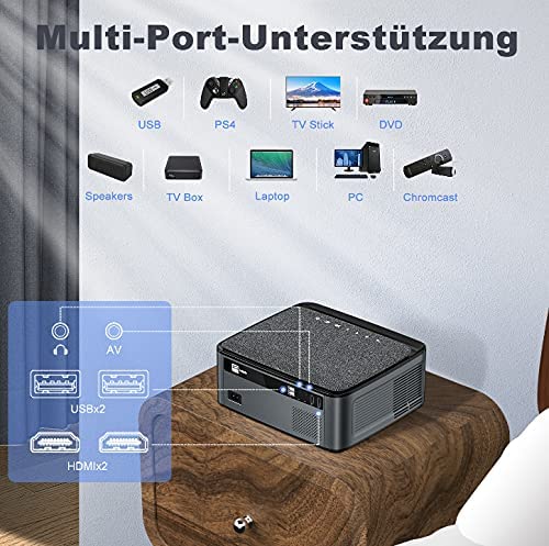 - 🎵〖5G WIFI Bluetooth Beamer〗Der Beamer muss keine zusätzlichen Kabel oder Adapter kaufen. Der WIFI Beamer unterstützt eine 2,4G/5G WLAN-Verbindung mit hoher Internetgeschwindigkeit und geringer Latenz. Die Bluetooth 5.0-Audioausgangserweiterungsfunktion unterstützt Bluetooth-Lautsprecher/Kopfhörer und Airpods.Die speziell entwickelten 10W Dual-High-Fidelity-Stereolautsprecher und das SRS-Soundsystem sorgen für unvergleichlichen 360°-HiFi-Stereo-Surround-Sound.