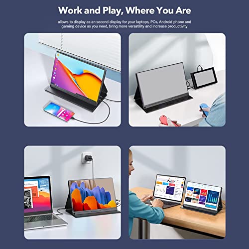 Tragbarer 1080P Monitor, 15,6 Zoll Full HD 1920 X 1080 USB C Computerbildschirm, IPS Bildschirm mit Zwei Lautsprechern, HDR SRGB Monitorverlängerung, Externer Monitor für Laptop, Telefon, Laptop Compu