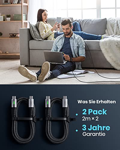 INIU USB C Kabel, [2m] 100W 5A PD QC 4.0 Schnellladekabel USB C auf USB C Kabel, Nylon handy ladekabel usb c für MacBook Air Samsung Galaxy S22 Ultra S21 S20 iPad Pro Laptop Switch Huawei
