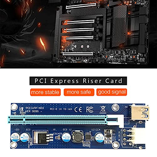 VER009S PCIE Riser 1X zu 16X Riser Card Extender Mining Miner, GPU Riser Express Kits USB 3.0 Verlängerung, PCI-E Riser Adapter Port Card Extender Wire, 6Pin Power für Videokarte PCIE Kabel Adapter