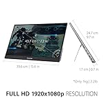- Ultra-tragbarer Monitor: wiegt nur ca. 90 g. Mit einer Dicke von nur 1,5 cm kann dieser 43,7 cm (17,3 Zoll) große tragbare Monitor leicht verpackt und überall hin mitgenommen werden