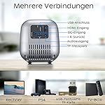 - 【Perfektes Filmerlebnis】: 480P Full HD wird unterstützt und die Auflösung wurde auf 3840 x 2160 (VGA auf 4k) erhöht. Verbessern Sie die Helligkeit und Farbsättigung des projizierten Bildes, um das Bild klarer und angenehmer zu machen (dunkle Atmosphäre ist besser). Außerdem ist die LED-Lichtquelle der neuen Generation energieeffizienter als andere Projektoren, was gut für das Heimkino ist und Ihr schützt Augen vor Schaden.