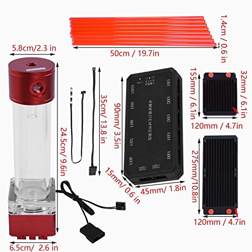 - 【Computer wassergekühltes integriertes Wasserpumpenset】 Aluminiumanode + PMMA-Material 800L / H 8W integrierte Wasserpumpe, großer 4P + kleiner 4-poliger Stromanschluss, 24-cm-Wassertank, unterstützt PWM-Geschwindigkeitsregelung.