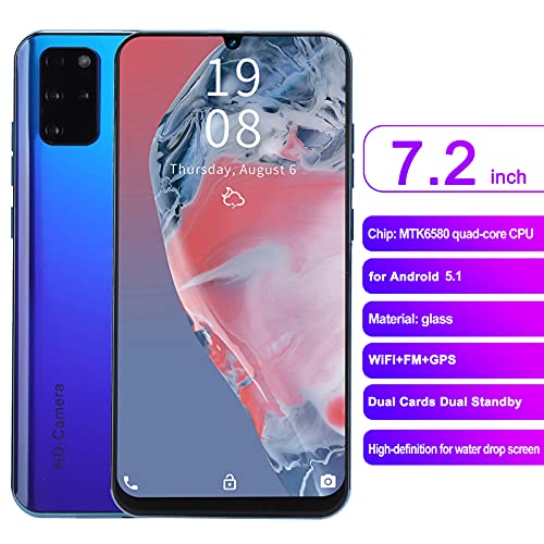 Yunseity Entsperrtes Smartphone, 7,2" HD Wassertropfen Bildschirm Smartphone Type‑C Port Android Smartphone Dual Cards Dual Standby 3G Smartphone, mit Schutzhülle + Film + Kopfhörer(Blau)
