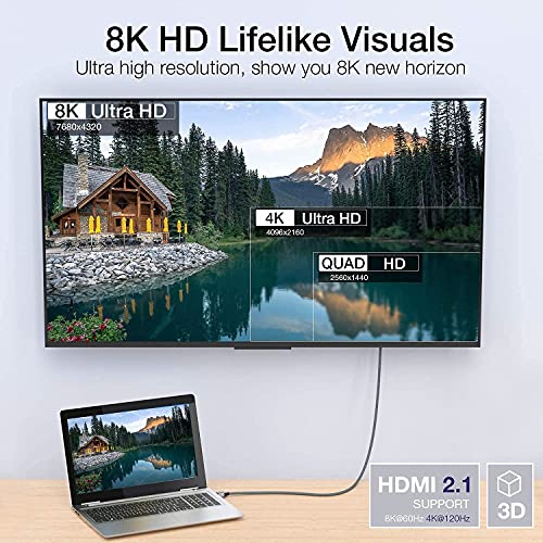 - 【Zertifiziert 8K HDMI Kabel】 8K HDMI 2.1 Unterstützung 8K@60Hz(7680*4320@60Hz), 4K@120Hz, UHD, HDR, Audio und Video Synchronisieren Übertragung. Außerdem rückwärtskompatibel mit HDMI 2.0b/2.0a/2.0/1.4/1.3/1.2/1.1. HINWEIS: Bitte machen sicher Ihre Geräte Unterstützung 8K.