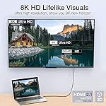 - 【Zertifiziert 8K HDMI Kabel】 8K HDMI 2.1 Unterstützung 8K@60Hz(7680*4320@60Hz), 4K@120Hz, UHD, HDR, Audio und Video Synchronisieren Übertragung. Außerdem rückwärtskompatibel mit HDMI 2.0b/2.0a/2.0/1.4/1.3/1.2/1.1. HINWEIS: Bitte machen sicher Ihre Geräte Unterstützung 8K.