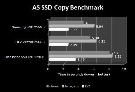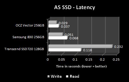 AS SSD Benchmark, besides standard 16MB, 512KB and 4KB tests, allows to measure llatency and has a Copy Benchmark, which simulates real world file copy situation.