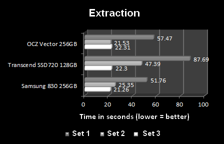 Since SSD performance largely depends on data type and file size, we use several sets of files in our real world file copy and extraction benchmarking procedure. In extraction test we use 7-Zip, probably the best archiving software around, and it's free.