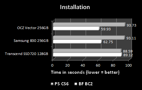 In the following tests we measure the time it takes to install Adobe Photoshop CS6 and Battlefield Bad Company 2, then update Bad Company 2 with the latest R11 patch. Finally, we run a Photoshop CS6 benchmark using a huge 58 MP photo.
