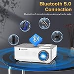 - 【2.4G/5G WiFi & Bluetooth 5.0】 This 5G WiFi projector supports 2.4G/5G WiFi dual-band connection, you can easily to wireless connect your smartphone/pad to realized faster and stable screen mirroring, it also supports wired screen mirroring (Only requires the charging cable). Besides, the build-in 5.0 Bluetooth chip allows you to connect the projector to your own ideal Bluetooth speakers/headset.(Bluetooth only support transfer audio, can't connect smartphone)