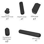 - ☞ Contain 7 different types of dust plug. Full protection for your Macbook Pro HDMI, Thunderbolt 4, SDXC, Charger Port & Headphone Jack ports. 2 pack: black*1, gift transparent*1