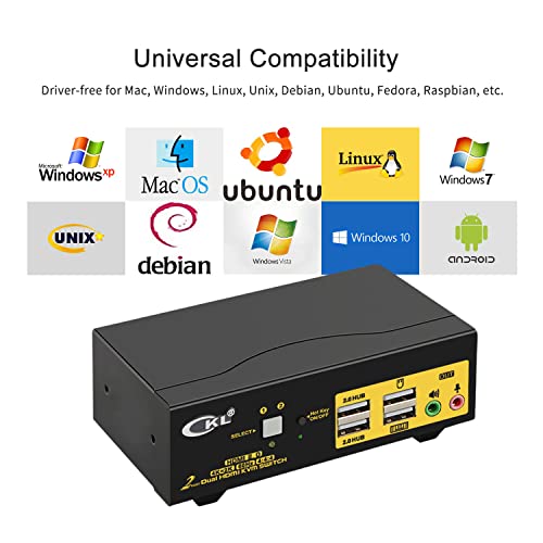 - 【DUAL MONITOR KVM SWITCH FOR 2 COMPUTERS】 Perfect for hooking up 2 desktops or laptops to share one set of keyboard, mouse and 2 monitors for extended or mirrored screens. Recommend to use 2 HDMI monitors display outputs. A premium KVM switch for setting up an efficient workspace and work safe from home.