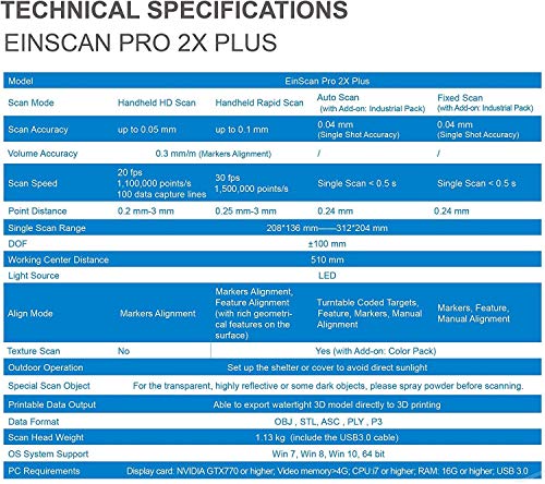 2021 EinScan Pro 2X Plus Multi-Functional Handheld 3D Scanner, Versatile/Align and Rapid/Fixed Scan Modes, 0.7 to 0.25mm Resolution, Built-in USB Cable, 0.04 mm Accuracy, 10fps to 30fps Scan Speed