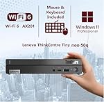 - TINY YET POWERFUL - The stylish, compact ThinkCentre neo 50q Gen 4 Tiny desktop PC delivers all the power of a tower desktop and is a member of the M70q, M80q, and M90q series, and weighs only 2.45 lbs, 1/4 weight of its SFF version. It can be placed almost anywhere, even in a small space, and is easy to carry, making it perfect for hybrid working.