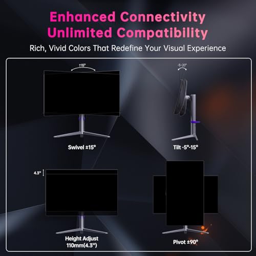 - [MORE SURPRISES] This OLED gaming monitor support KVM, support 100×100mm vesa, height/tilt/swivel/pivot adjustable,there are more possibilities to explore. And 2×5W built-in speakers and remote control create the new era of cinema immersion.