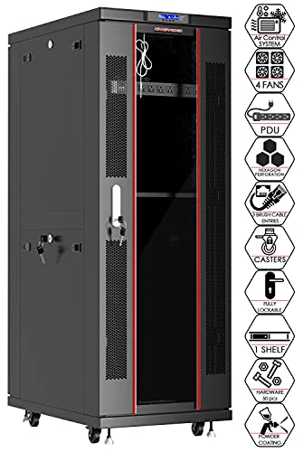 Server Rack - 39 Inch Deep - Server Cabinet - on Wheels - Locking Network Cabinet - Networking Enclosure - Lockable Rack Mount - PDU - LCD-Screen - Thermostat - 4 X Fans (32U (24" w x39 d x67 h))