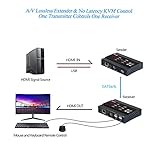 - ※【Ultra HD lossless low latency kvm extender】The 4k hdmi kvm extender offers low latency <50ms without delays and compression artefacts that degrades the high-resolution viewing experience Great ideal for applications such as broadcast, high-end medical imaging, interactive digital signage, home theatres, and even industrial automation.